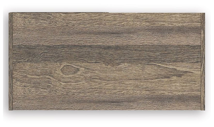 - Weathered brown finish over replicated oak grain with authentic touch