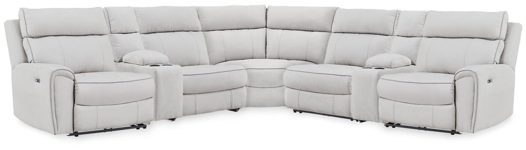 | 7-Piece: 3 Power Recliners (LAF/RAF & Armless) + Armless Chair + Wedge + 2 Consoles w/ Storage |